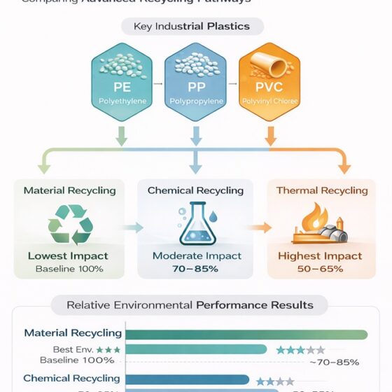 Confidential Screening LCA for Advanced Recycling Pathways: Supporting Strategic Material Decisions for Yazaki CorporationExecutive SummaryDEISO conducted a confidential screening Life Cycle Assessment (LCA) study for Yazaki Corporation, Japan, to evaluate and compare the environmental performance of multiple recycling pathways for key polymer materials. The study assessed material recycling, thermal recycling, and chemical recycling (pyrolysis) across polyethylene (PE), polypropylene (PP), and polyvinyl chloride (PVC).Due to confidentiality constraints, results are presented using relative performance indicators (%) rather than absolute values, enabling strategic…