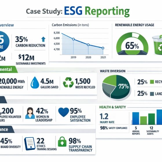 ESG Reporting Transformation for a Consumer Electronics Manufacturer in Malaysia This illustrative case study demonstrates how DEISO can structure an ESG reporting transformation for a manufacturing organization seeking more credible, data-driven, and strategically aligned sustainability disclosure. The scenario is designed to show how environmental, social, and governance indicators can be organized, quantified, evaluated, and translated into reporting improvement priorities. Case Positioning This is an illustrative technical case study prepared to demonstrate DEISO’s ESG reporting methodology. It does not represent a…