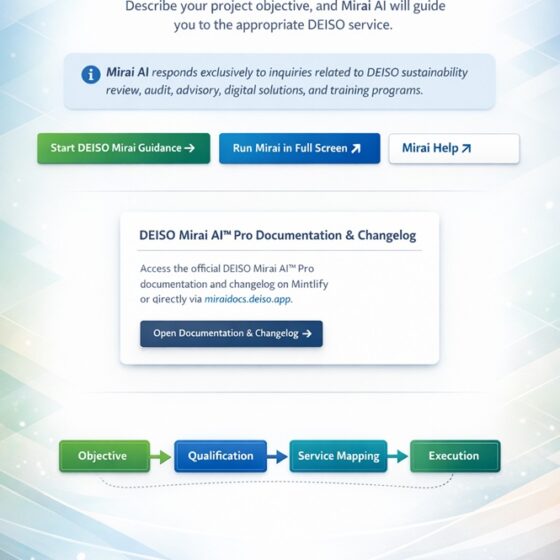 DEISO Announces 13 Pre-Submission Audit & Advisory Services to Strengthen Sustainability Governance and Verification Readiness In today’s regulatory, procurement, and investor-driven environment, sustainability reporting alone is no longer enough. Organizations are increasingly expected to demonstrate methodological integrity, data traceability, internal control, and audit-ready documentation across ESG disclosures, GHG inventories, Life Cycle Assessment (LCA), Product Carbon Footprint (PCF) studies, and Environmental Product Declarations (EPDs). To respond to this growing market need, DEISO announces its structured portfolio of 13 Pre-Submission Audit &…
